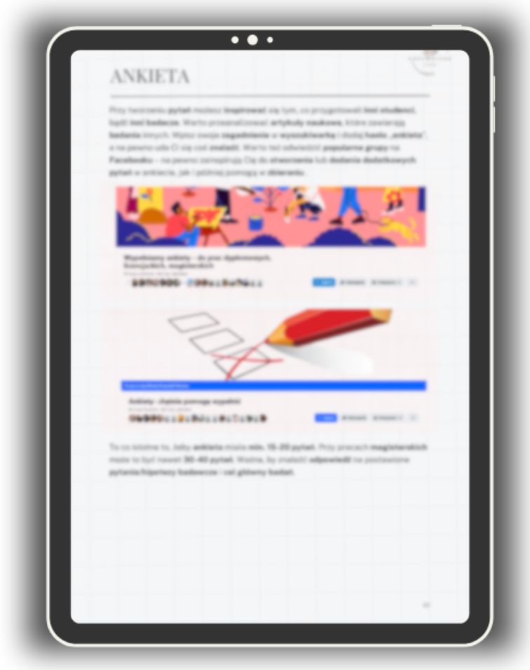 Ebook „Badania w pracy dyplomowej – od metodologii do wniosków” – prosty schemat działania, który przeprowadzi Cię przez cały proces, dzięki czemu możesz zaplanować, przeprowadzić i opisać badania w swojej pracy w sposób uporządkowany i świadomy.